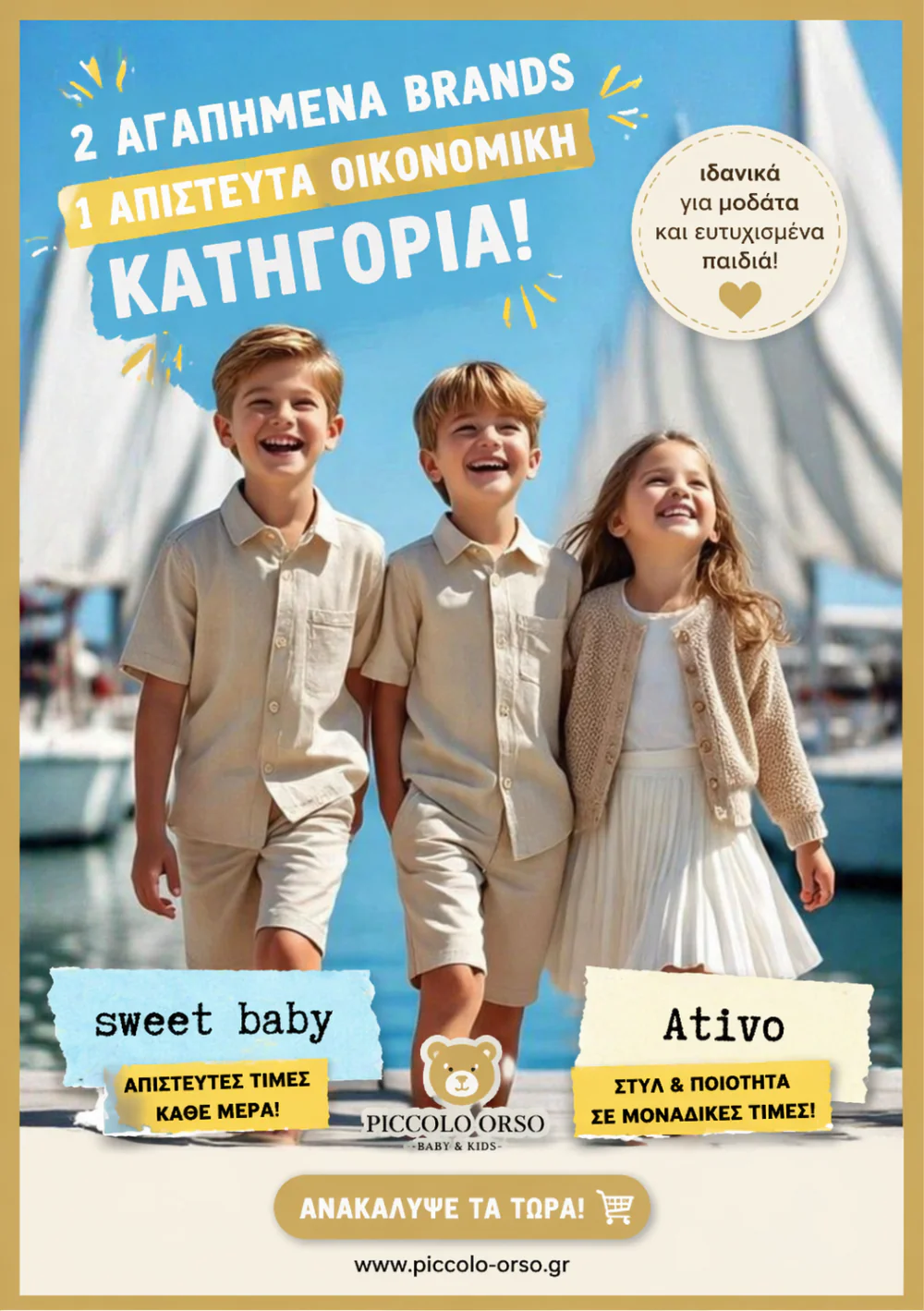 Στο Piccolo Orso θα βρείτε ξεχωριστά παιδικά ρούχα , παπούτσια και ολοκληρωμένα πακέτα βάπτισης υψηλής ποιότητας. Επώνυμα brands, πρωτότυπα σχέδια και οικονομικές τιμές, όλα με γνώμονα την ποιότητα, την άνεση και το στυλ του παιδιού σας.