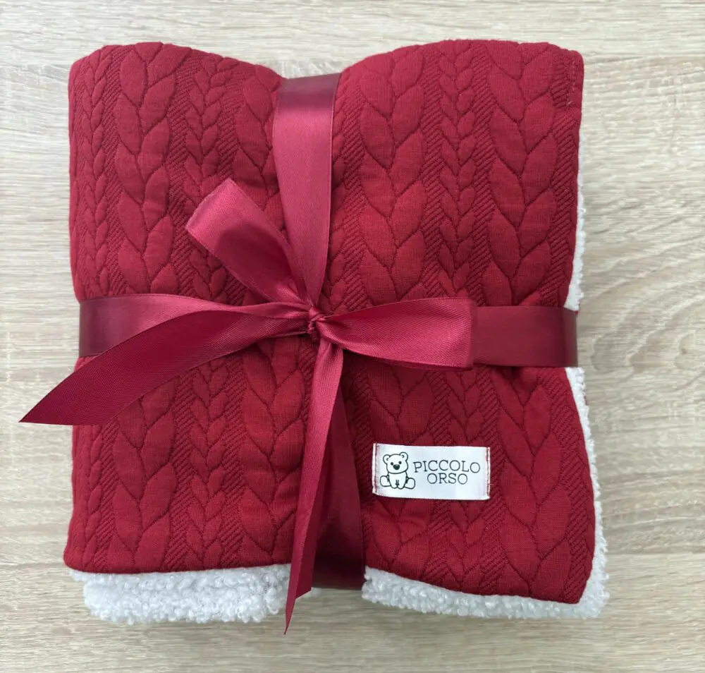 κουβερτακι Αγκαλιας κοκκινο με γουνάκι λευκο piccolo orso 70*70