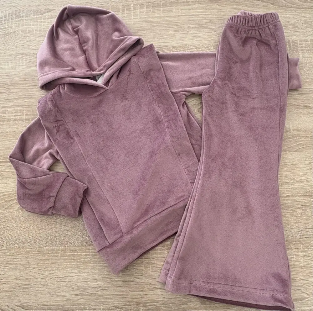 Σετ Βελούδινο Μονόχρωμο “ Παντελόνα και Μπλούζα Με Κουκούλα” sweet baby 9725