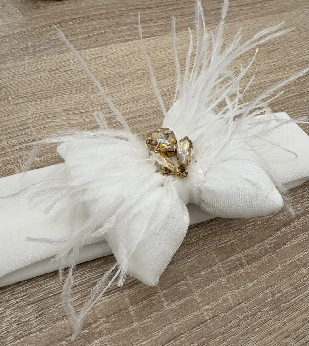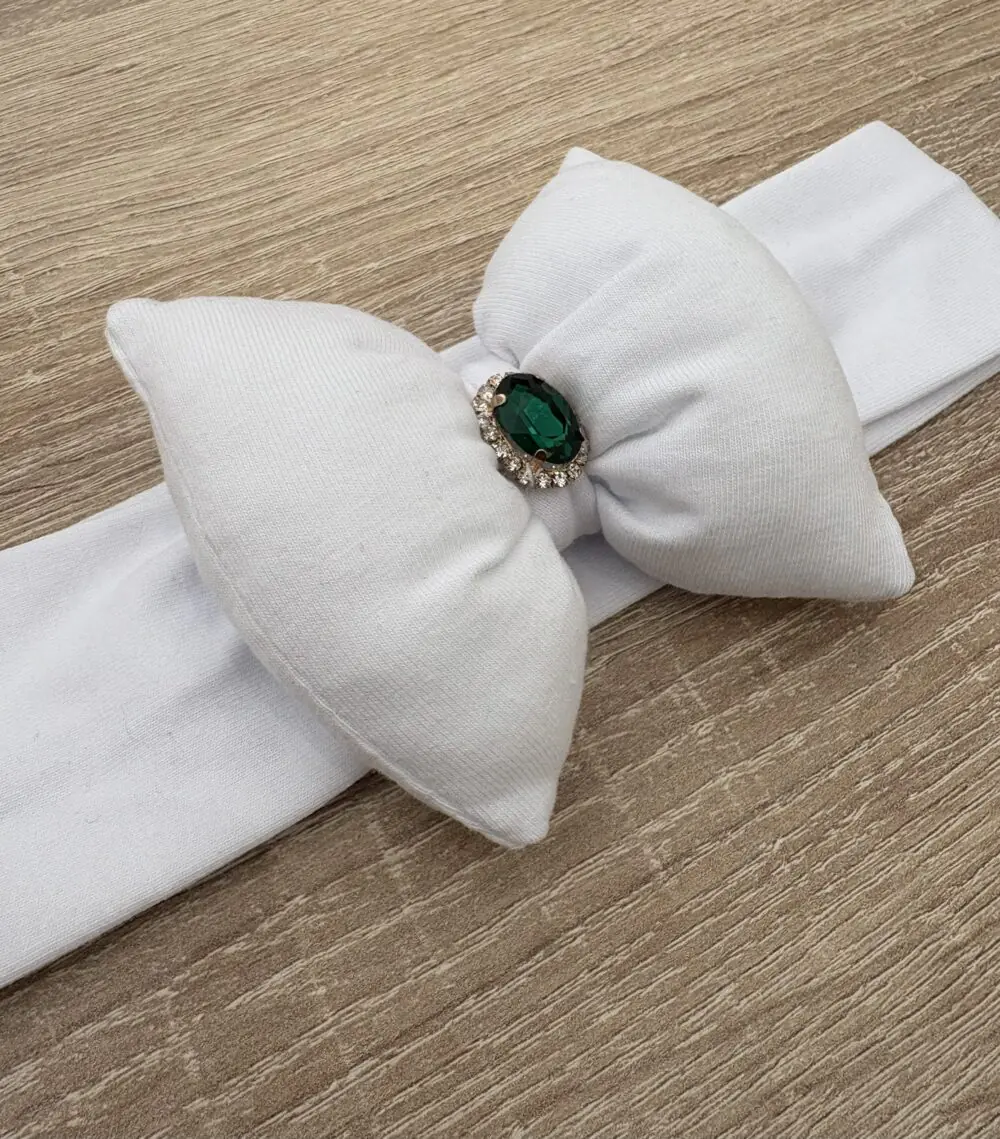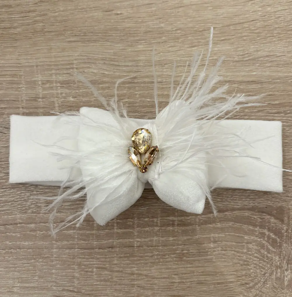 χειροποίητη κορδέλα μαλλιών piccolo orso λευκή με φιογκο