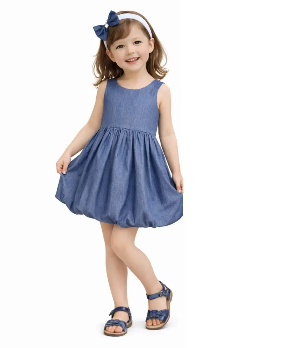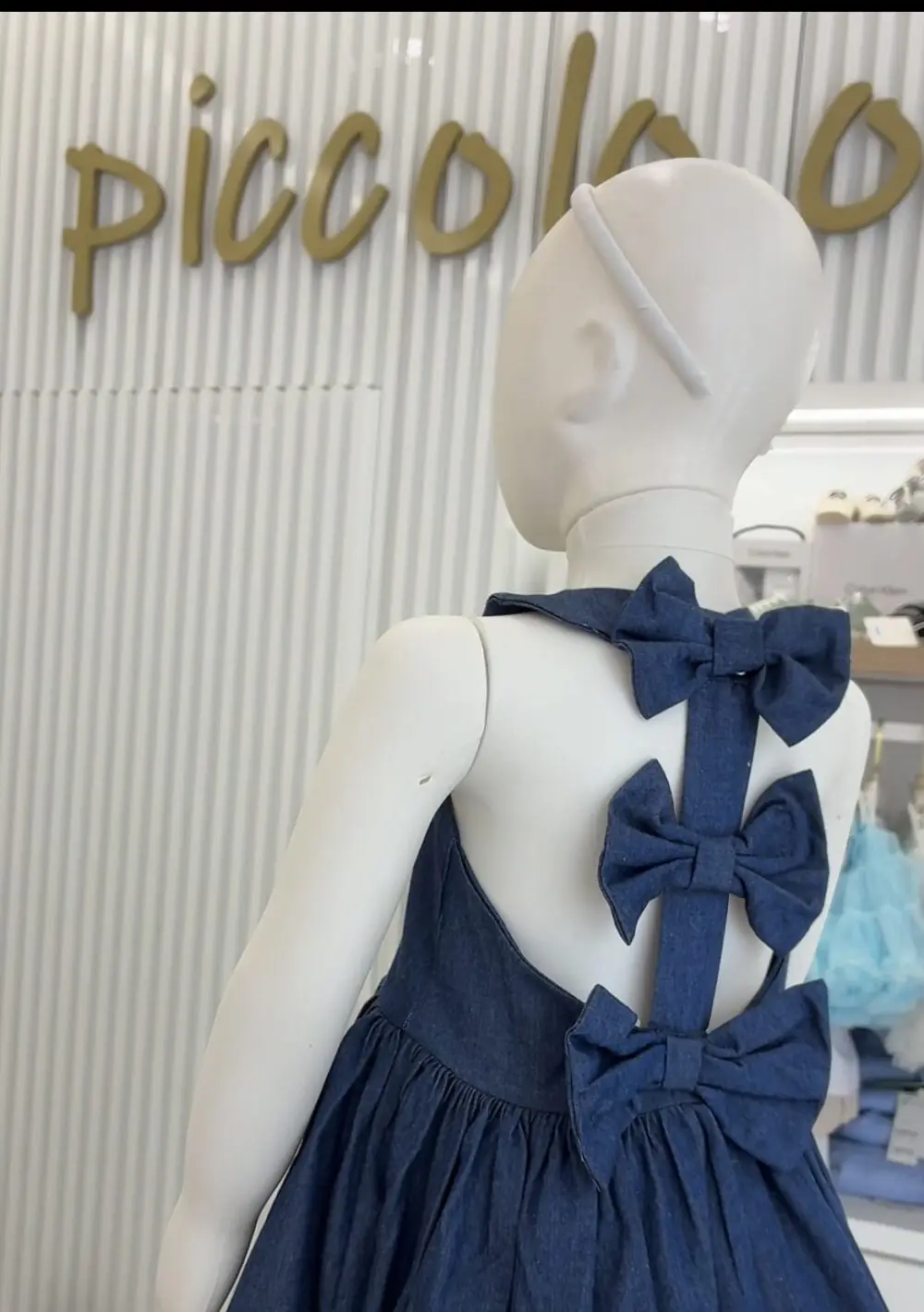 Φόρεμα τζιν με ανοιχτή πλάτη και φιογκάκια Γ178 Sweet Baby