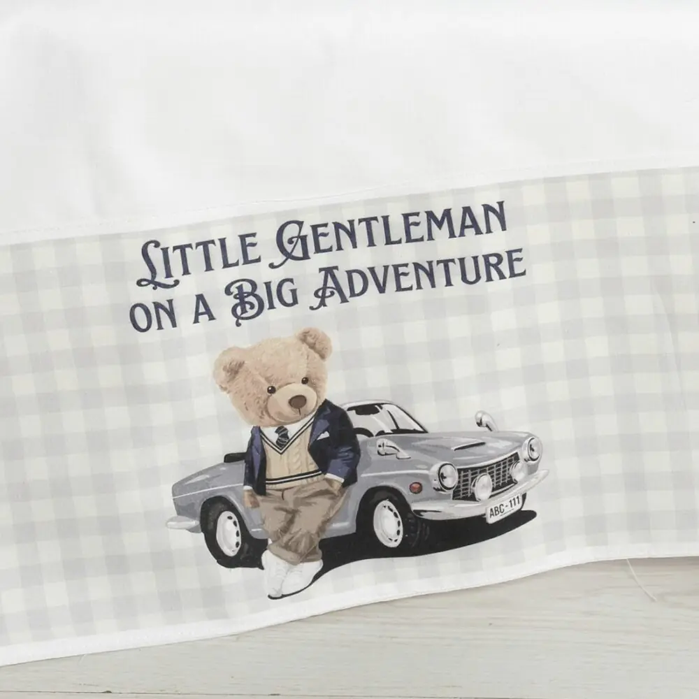 Λαδόπανα: Πλήρες σετ (πετσέτες, εσώρουχα) από 100% βαμβάκι, με τυπωμένη φάσα σε καρό μοτίβο και την παράσταση του “Little Gentleman”.