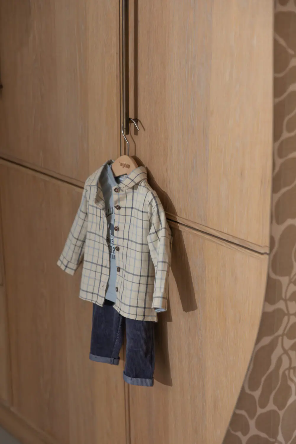 Ένα δροσερό και πολυμορφικό σετ για το φθινόπωρο! Αυτό το σετ αγοριών της Dirkje αποτελείται από ένα καρό πουκάμισο σε ανοιχτό καφέ με μπλε, τέλειο για να φορεθεί ελεύθερο ως overshirt. Από κάτω υπάρχει ένα ανοιχτό μπλε μακρυμάνικο πουκάμισο με ωραίο σχέδιο στο μπροστινό μέρος. Το αντίστοιχο παντελόνι σε σκούρο μπλε βελουτέ με ριπιτή υφή ολοκληρώνει το σύνολο.
